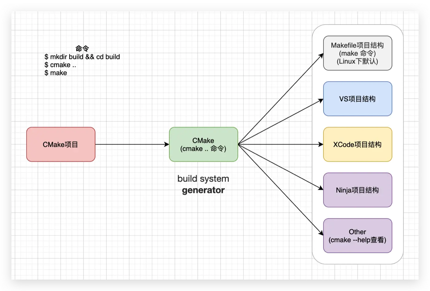 CMake 是一个构建系统生成器(build system generator),不是 build system