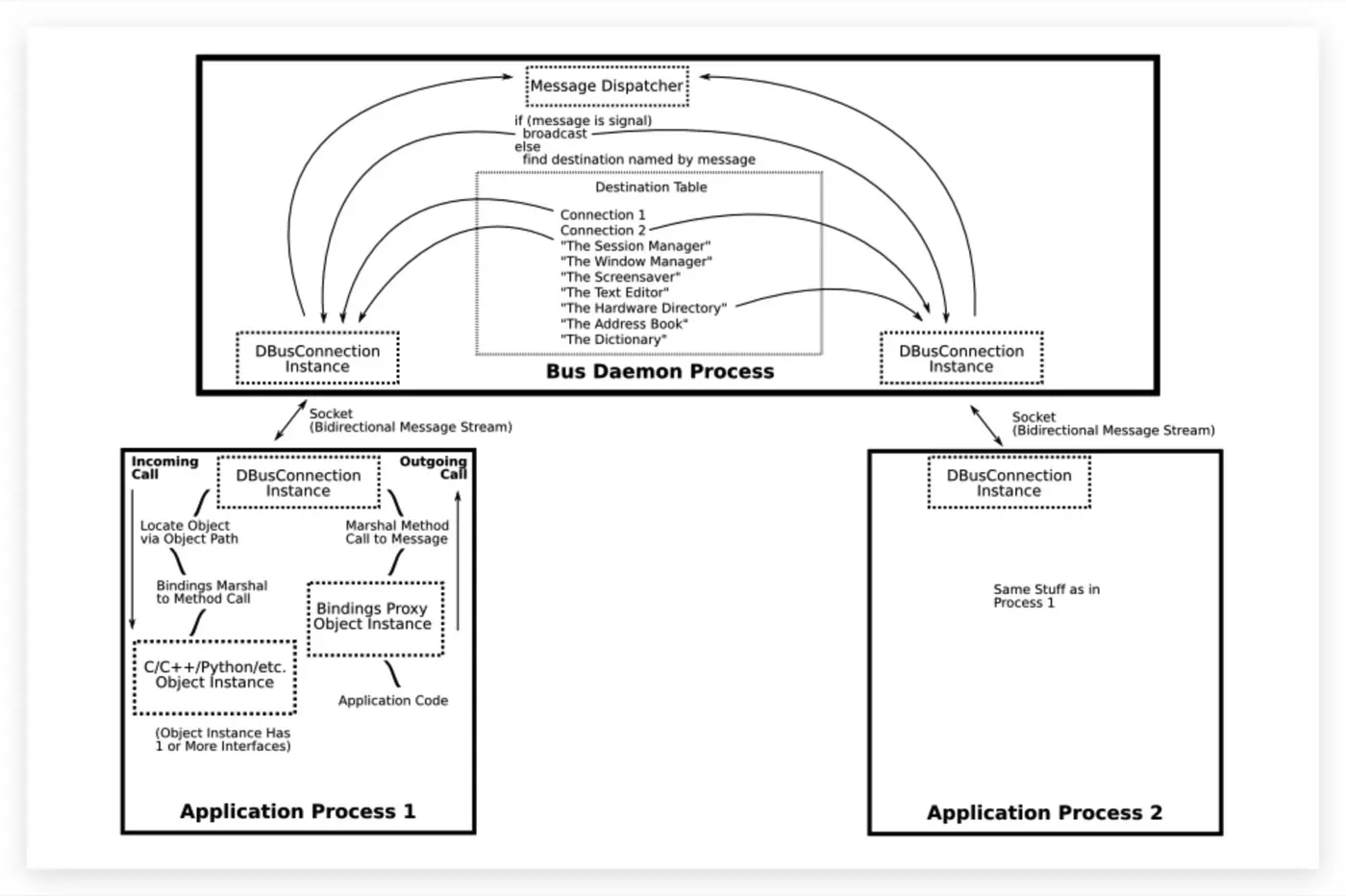 D-Bus is a message bus system, a simple way for applications to talk to one another. In addition to interprocess communication, D-Bus helps coordinate process lifecycle; it makes it simple and reliable to code a "single instance" application or daemon, and to launch applications and daemons on demand when their services are needed.