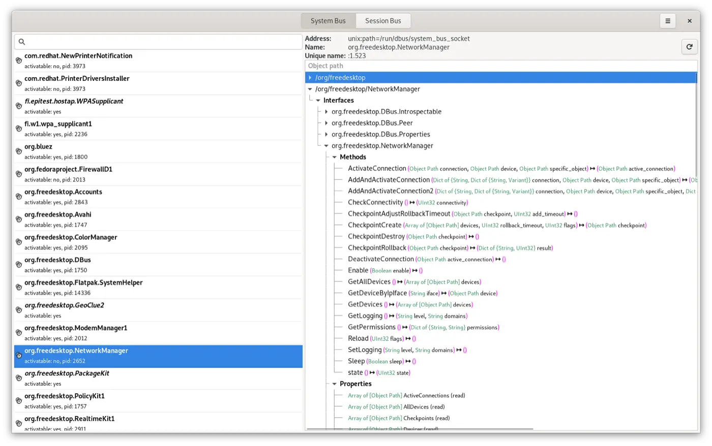 | Bus | address | unix:path=/var/run/dbus/system_bus_socket | system configuration |