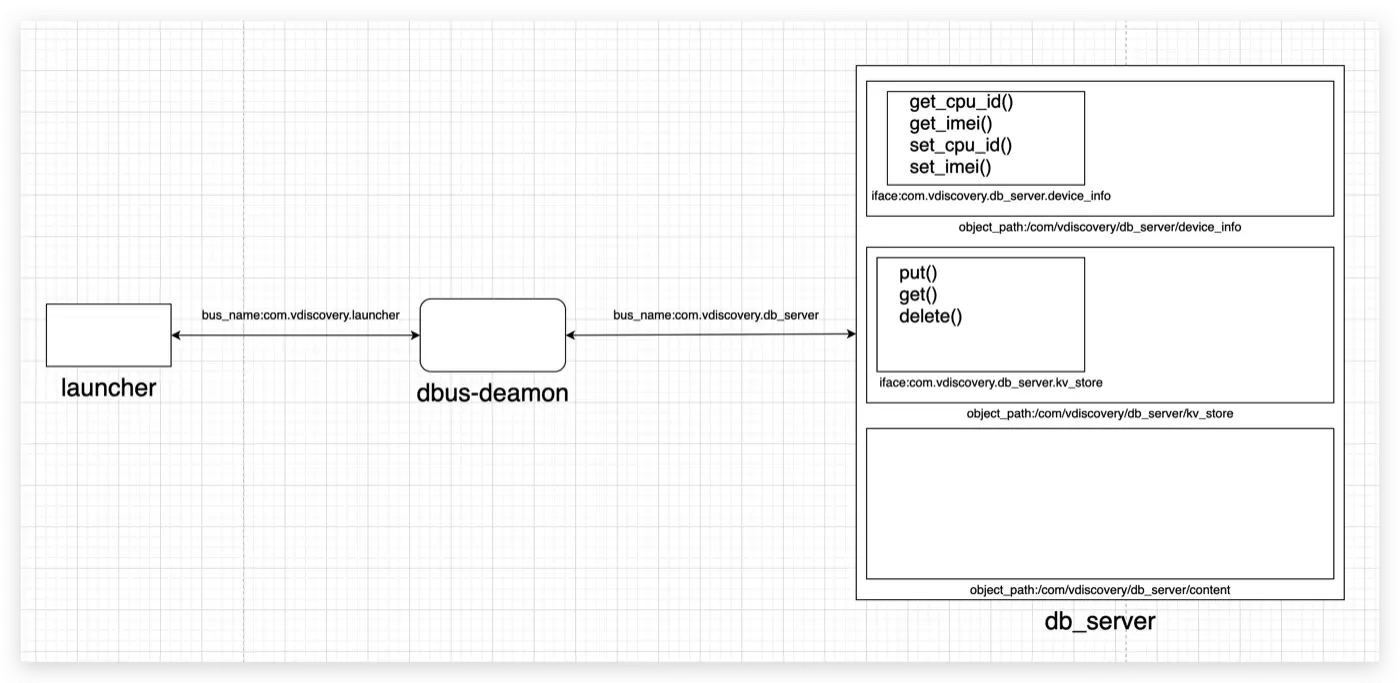 场景:launcher 访问 db_server 获取设备信息,比如:获取 cpu_id。launcher 作为客户端,db_server 做为服务端