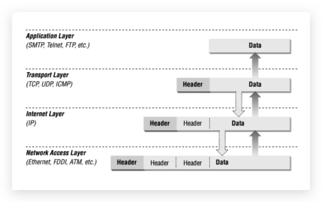 • 对于TCP/IP协议栈:每个模块只需要处理和关心属于自己部分的数据,然后交由下一阶段的去处理